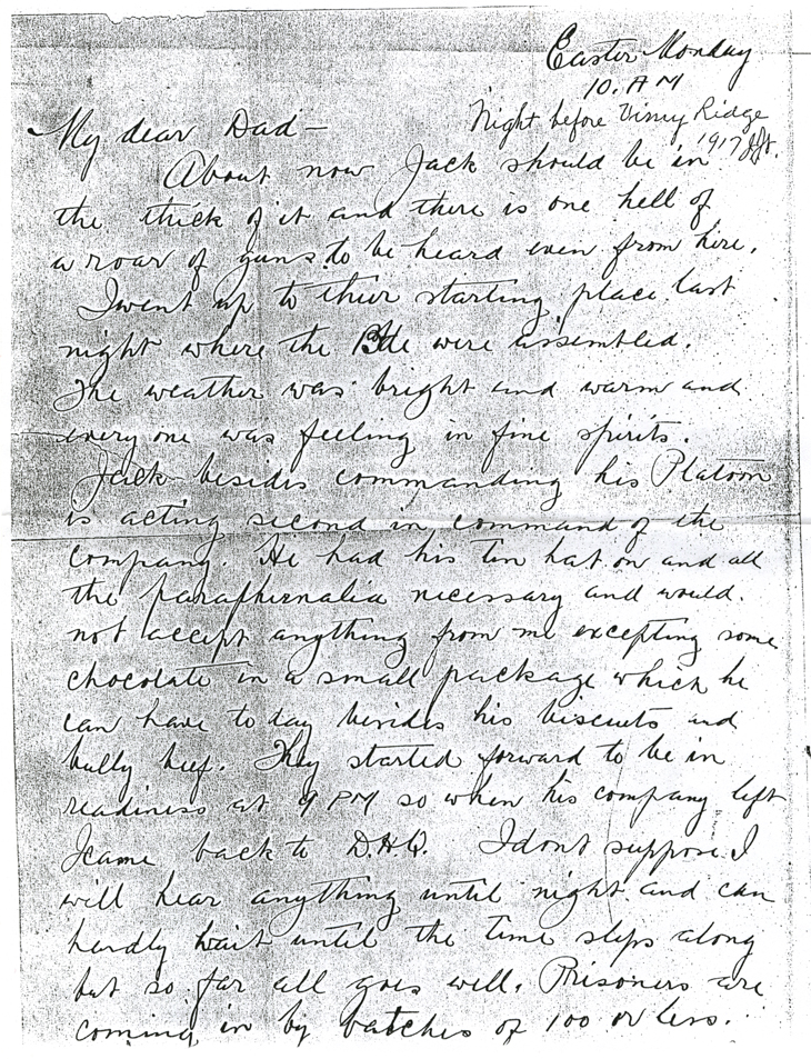 [note added below date: “Night before Vimy Ridge 1917,” initialed:“J[?]”]