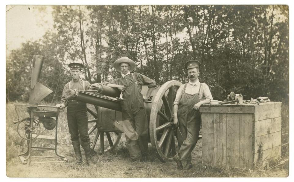 #10-front: George Farlie (middle) with artillery; Petawawa, 1921.
